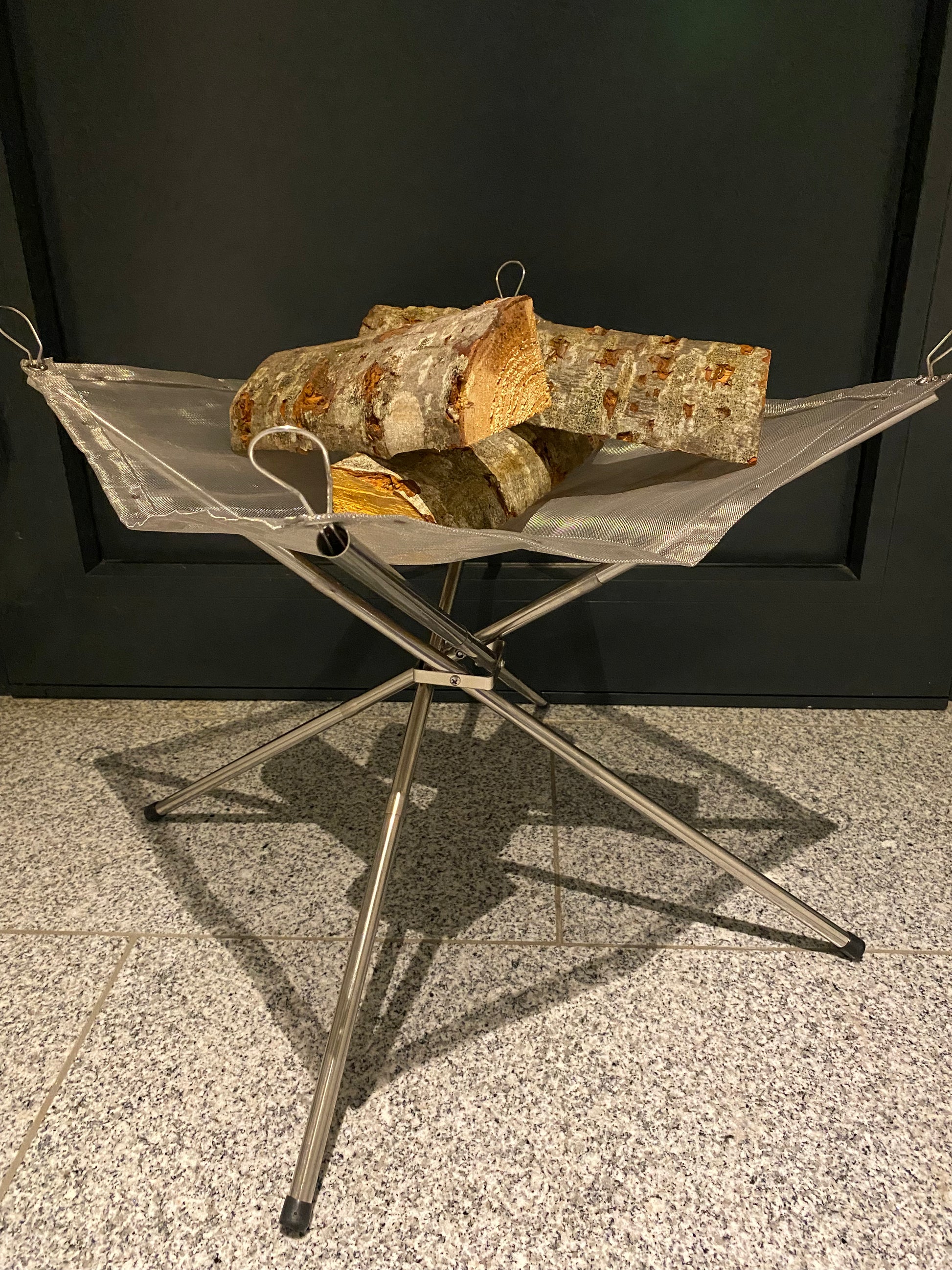 Unser Lagerfeuer mit Edelstahlnetz ist kompakt, leicht und optisch eine super Alternative. Das Feuer brennt durch die direkte Luftzufuhr perfekt, es bleibt kaum Asche übrig, der Boden wird geschont, da sich die Hitzequelle auf rund 40cm Höhe befindet.