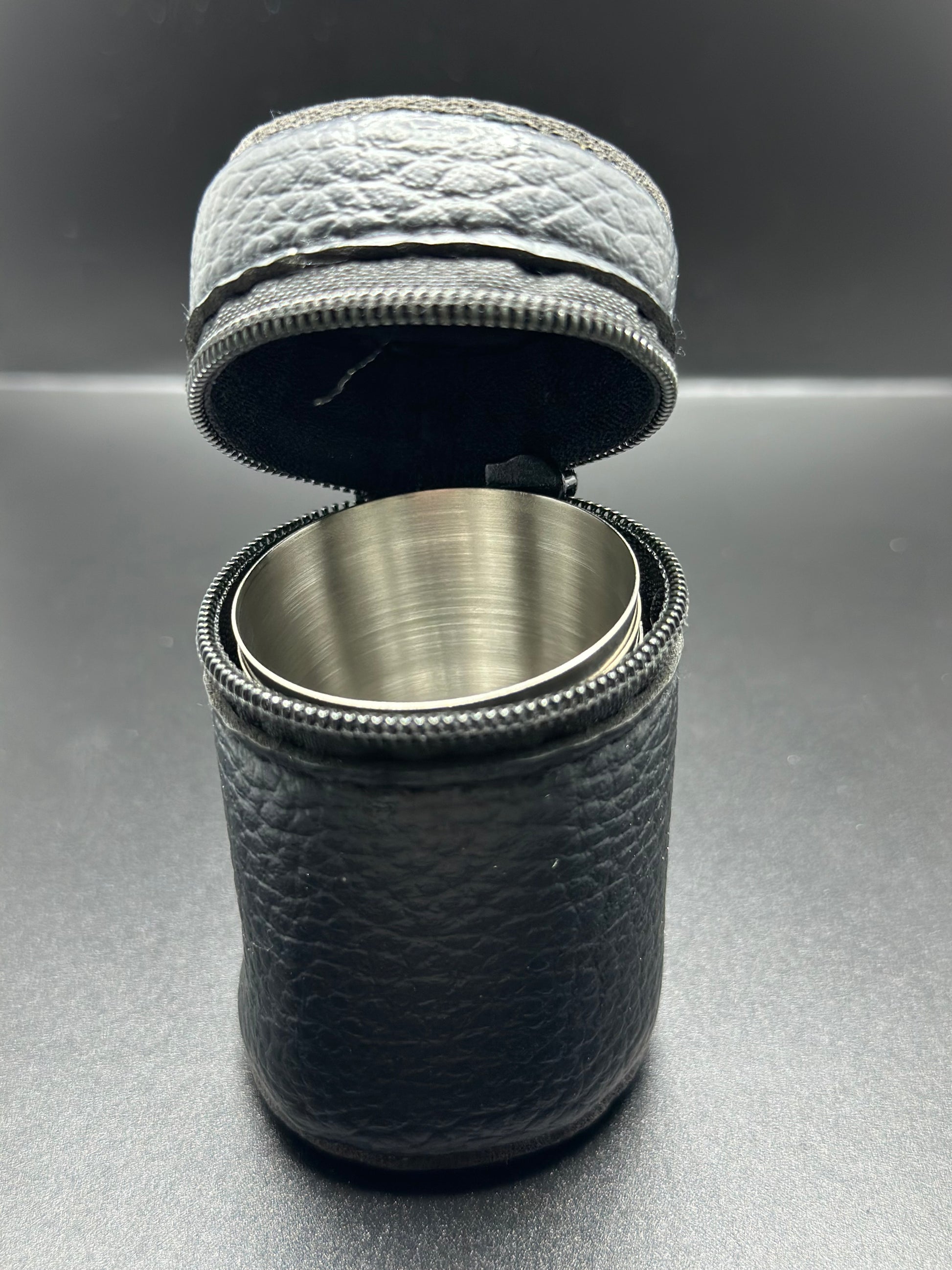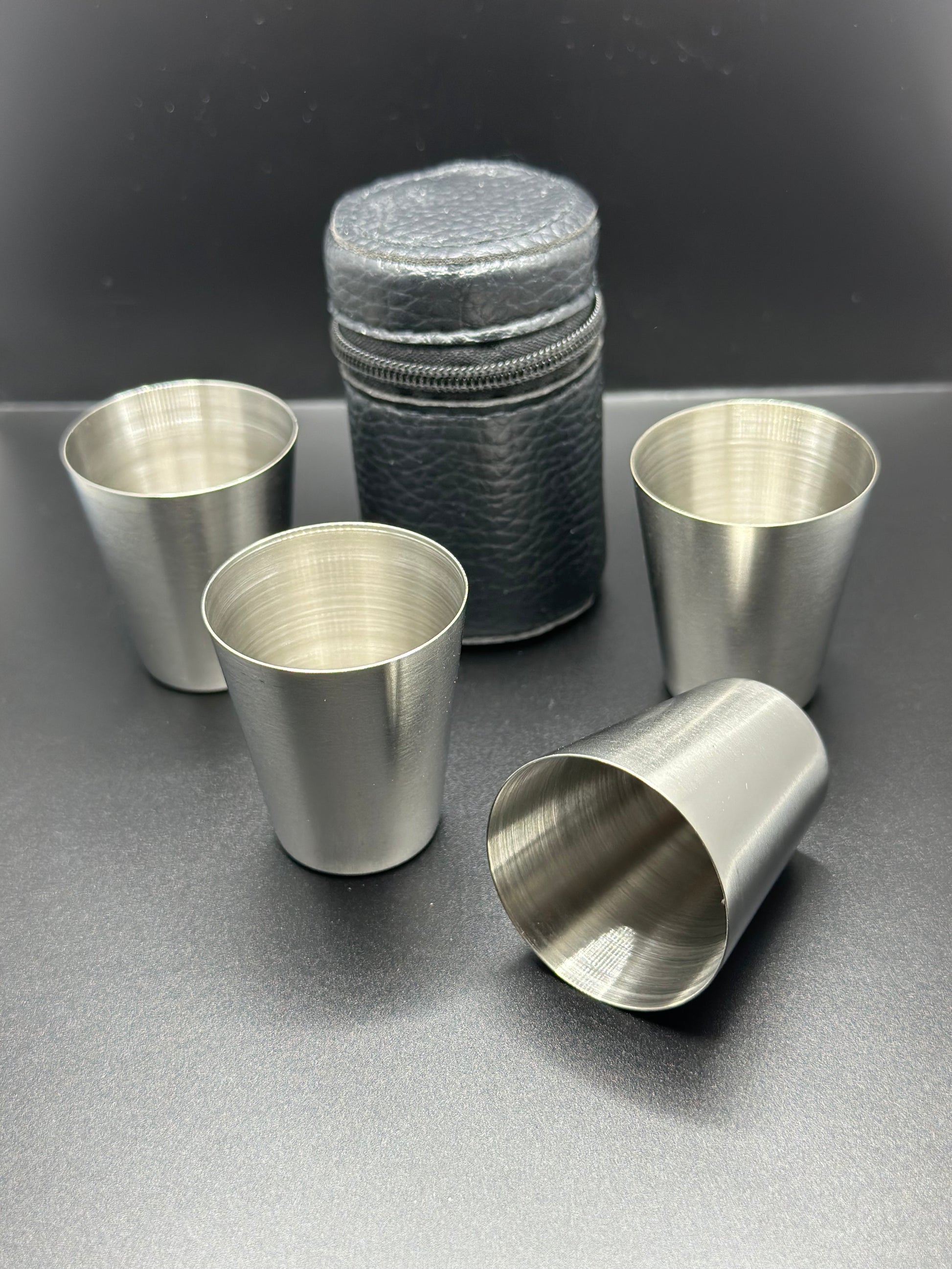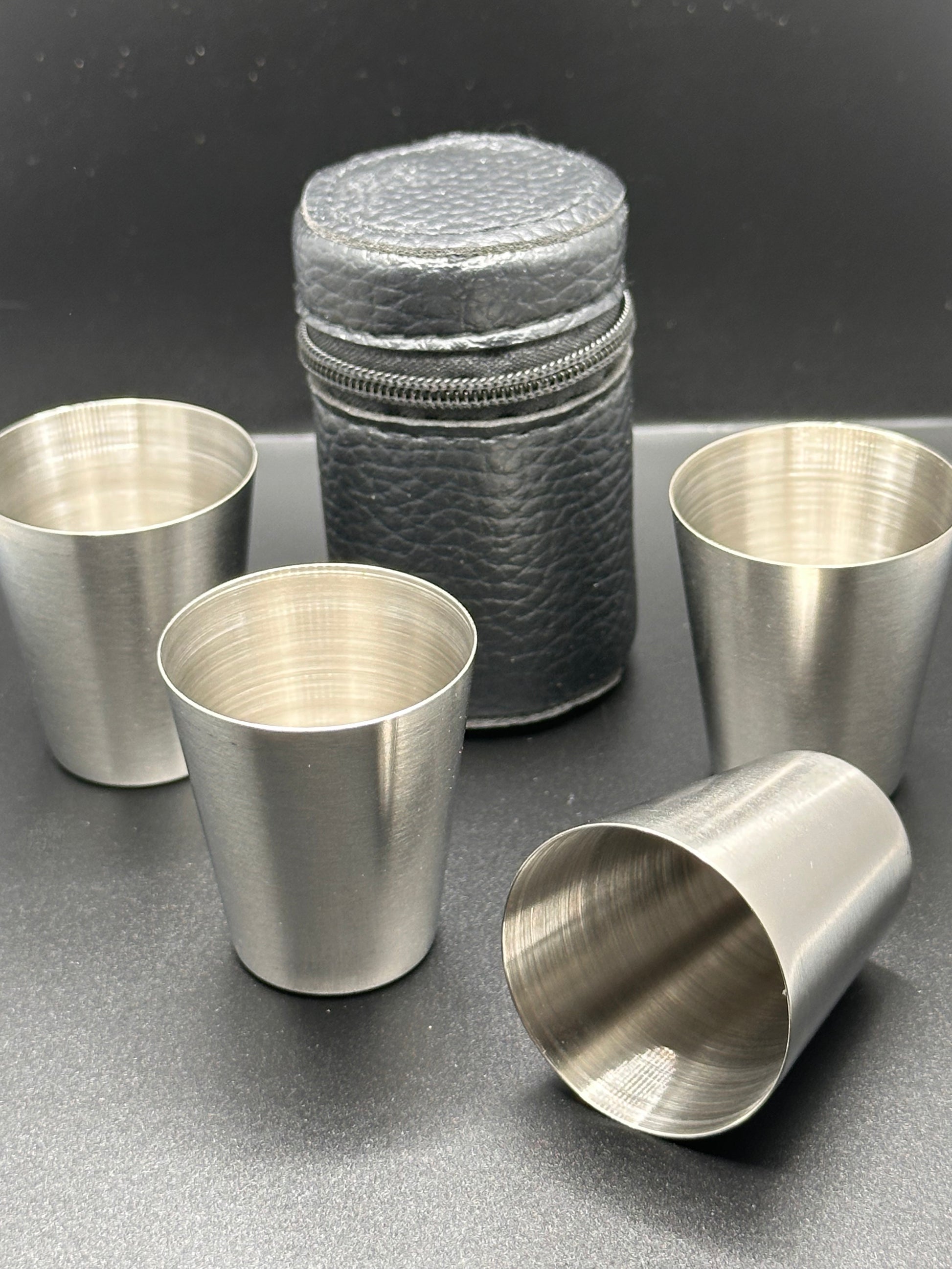 Camping-Schnapsbecher (4 Stück) aus Edelstahl - das hat Stil! - im Lederetui